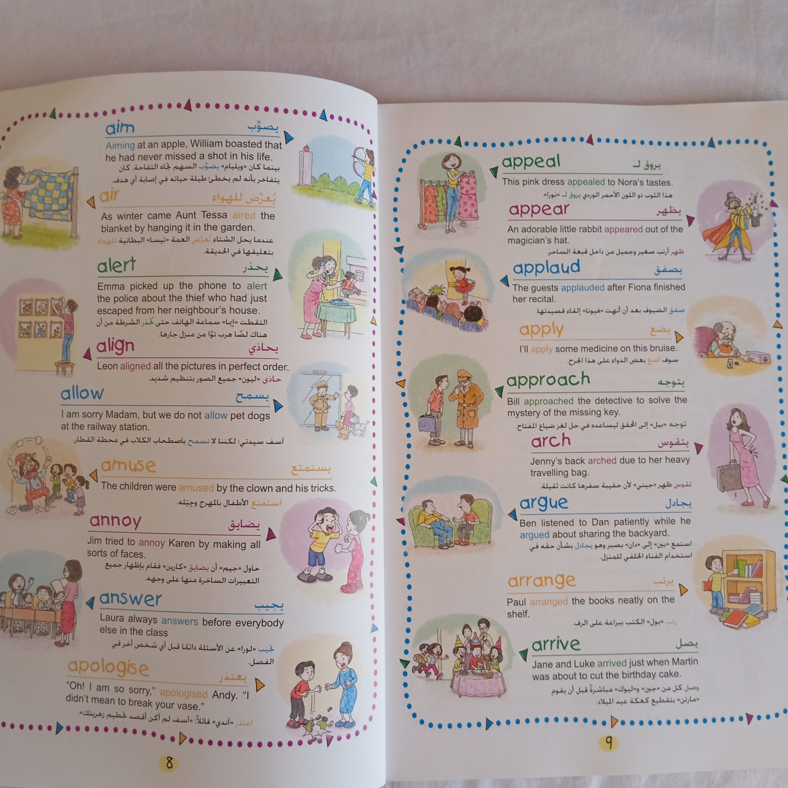 قاموس يمكن طفل من عمل جمل مفيده باستخدام تلك الأفعال والمتشابهات منها