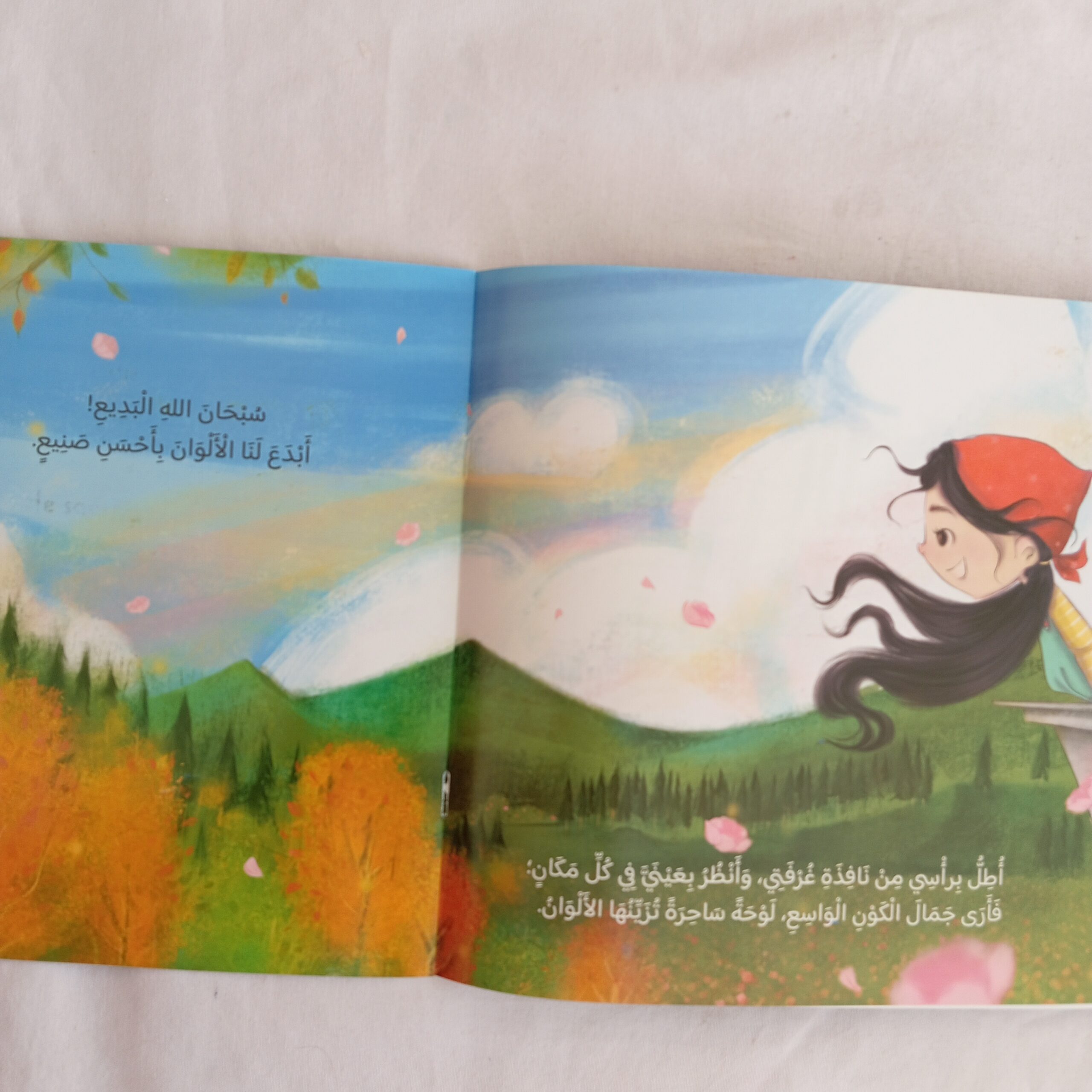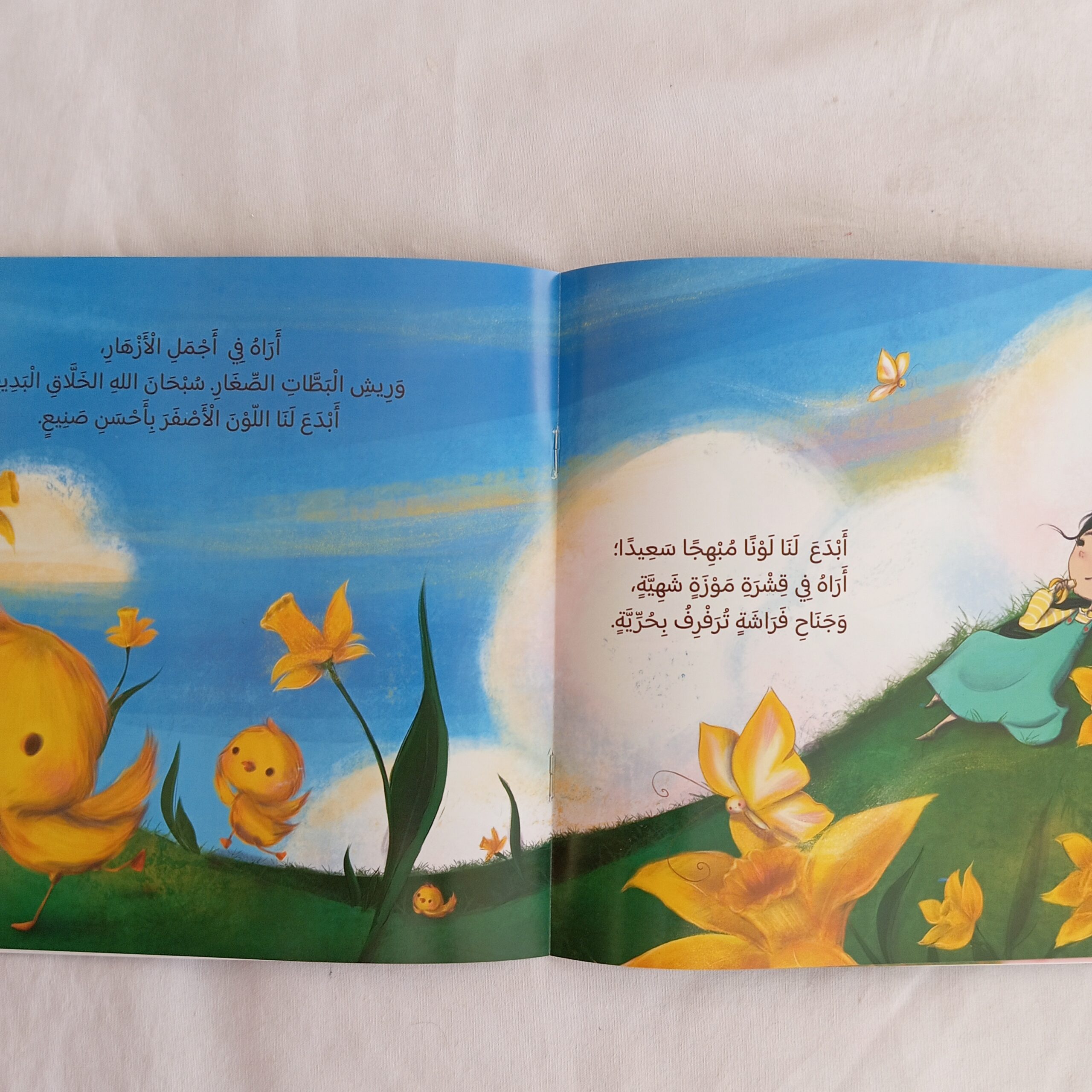 يربط الكتابُ الطفلَ بالله سبحانه وتعالى ويقوم بتقريب معنى أحد أسماء وصفات الله تعالى (البديع.. بديع السماوات والأرض) من خلال الأمثلة على المخلوقات المختلفة من حولنا.