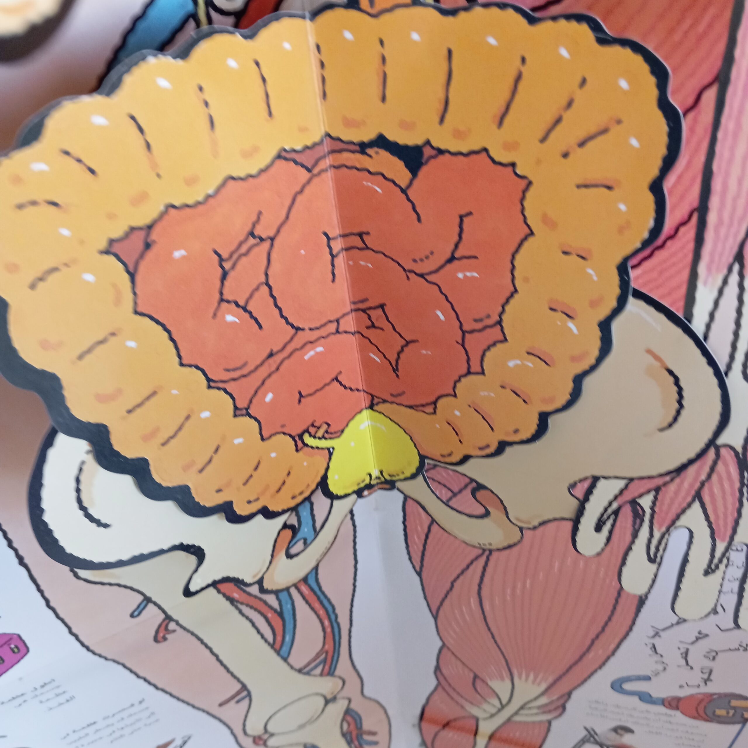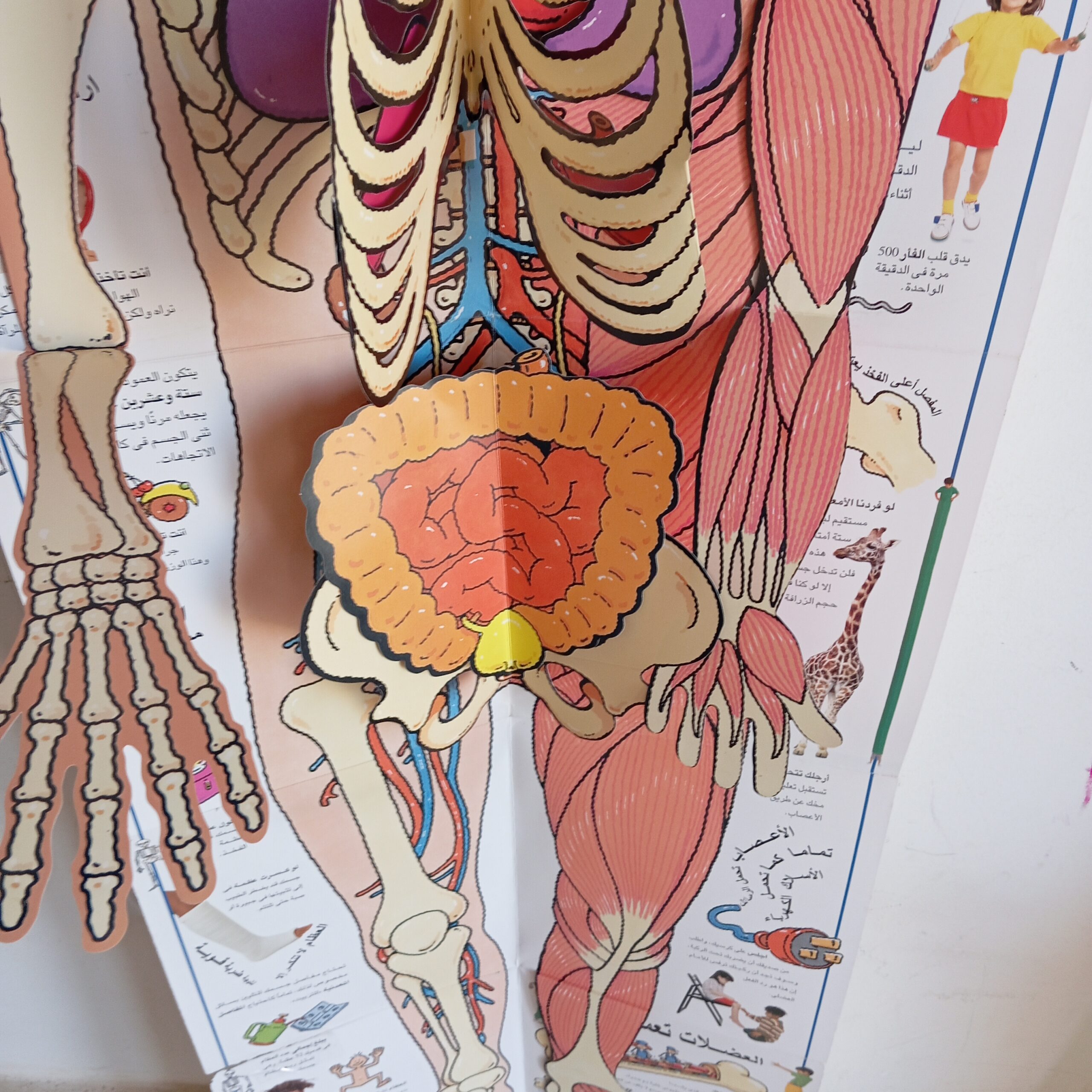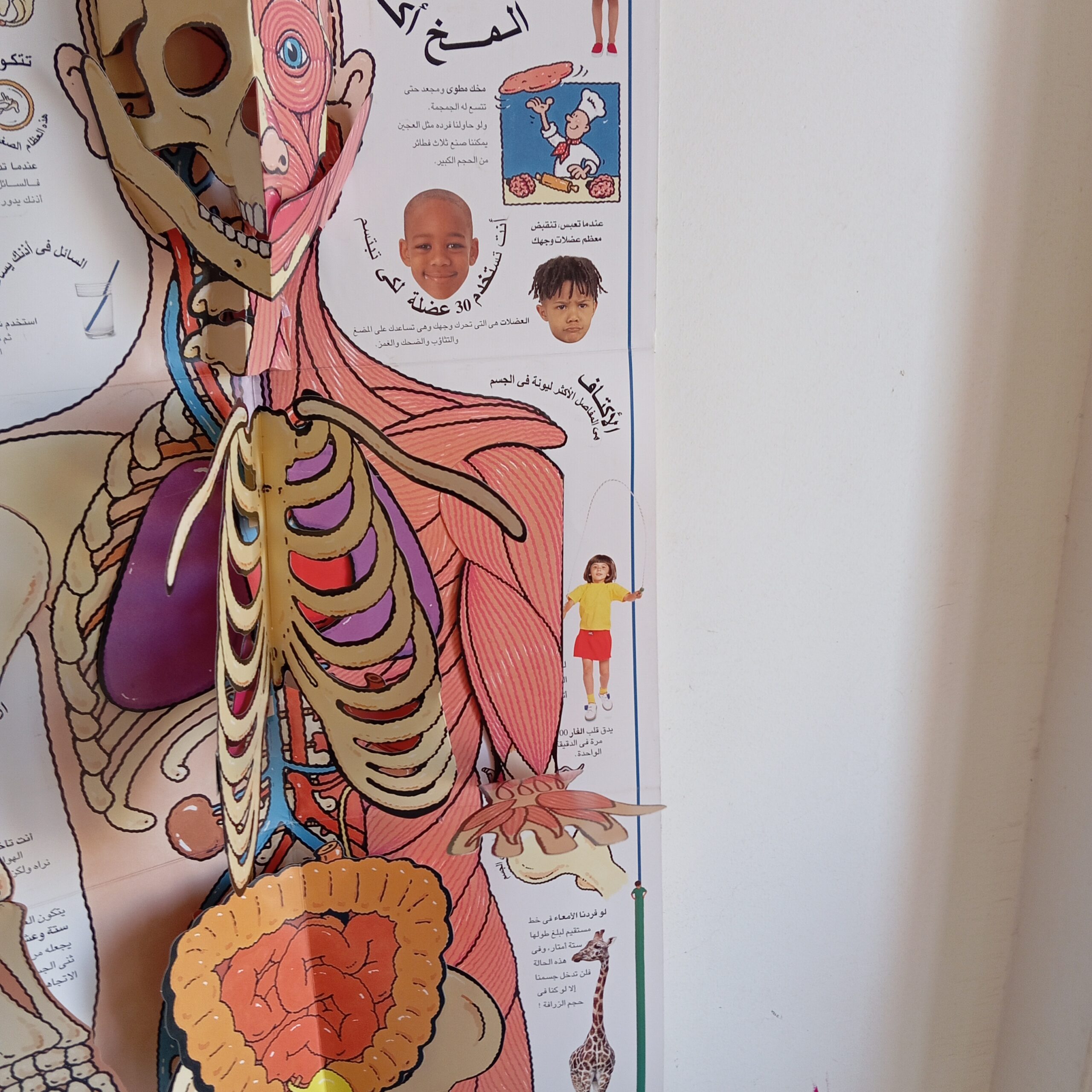 كتاب ضخم صفحاته مطويه تفتح كمجسم لجسم الانسان بحجم الانسان طوله أكثر من متر ونصف