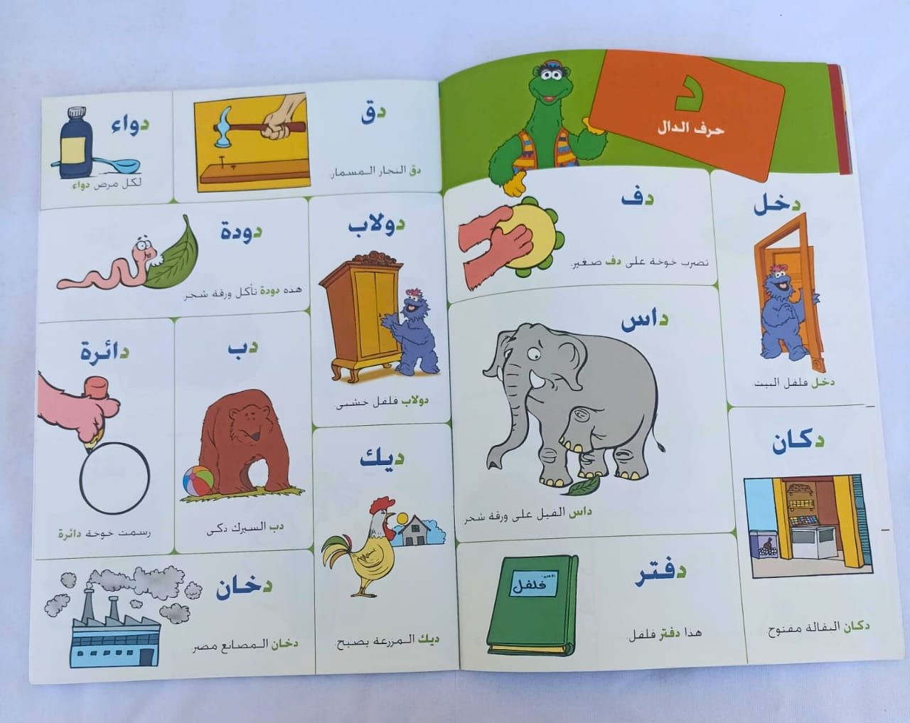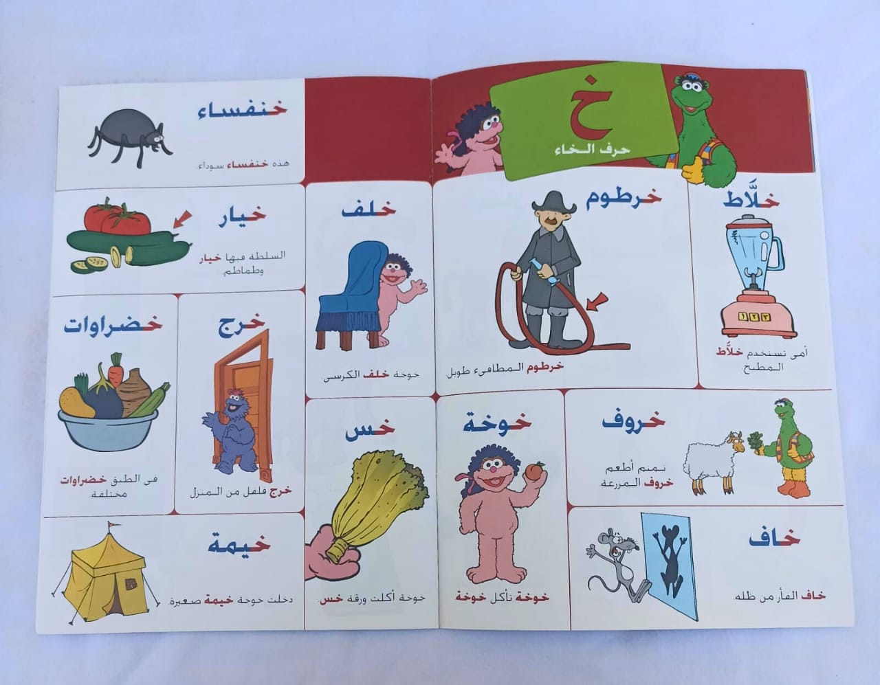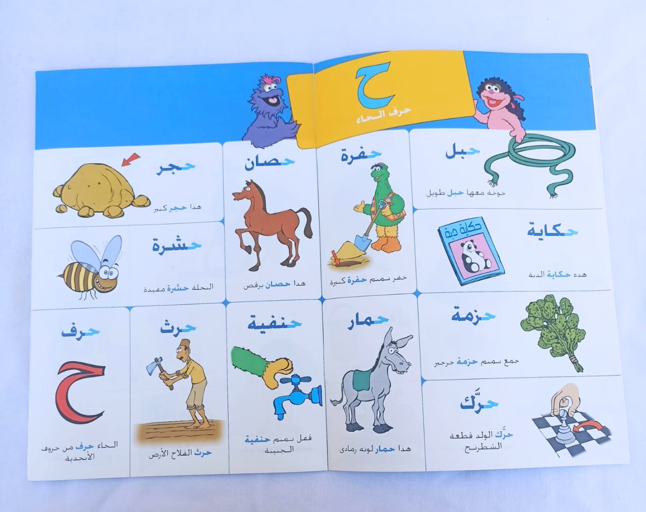 كتاب رائع لتعليم الحروف العربيه كل حرف له صفحتنا كاملتين من الحمل والكلمات والصور